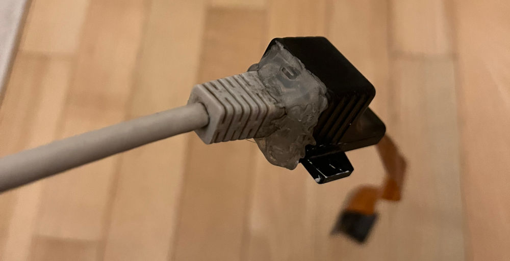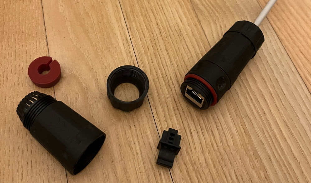 Drowning that part in generous ammounts of hot glue makes it water-resitant as well. The resulting system is pretty modular - one does not have to afix the outer cable to the lead-through, which is why I’ve went on on this adventure in the first place.